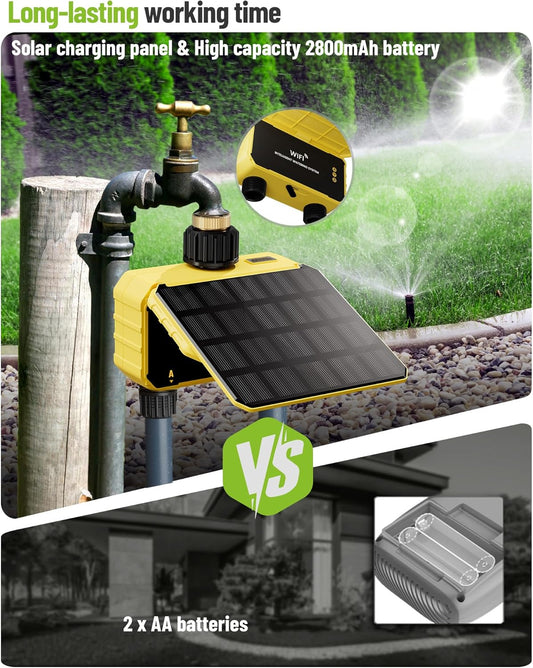Solar Powered Smart WiFi Water Timer 2 Zone | HIVAGI® Irrigation Controller for Garden.