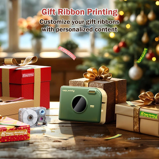 Phomemo A30 Ribbon Label Printer & Portable Mini Label Maker | Bluetooth Thermal Sticker Machine for Gift Wrapping, Name Tags & Home Organization | Waterproof & Rechargeable (Retro Green)