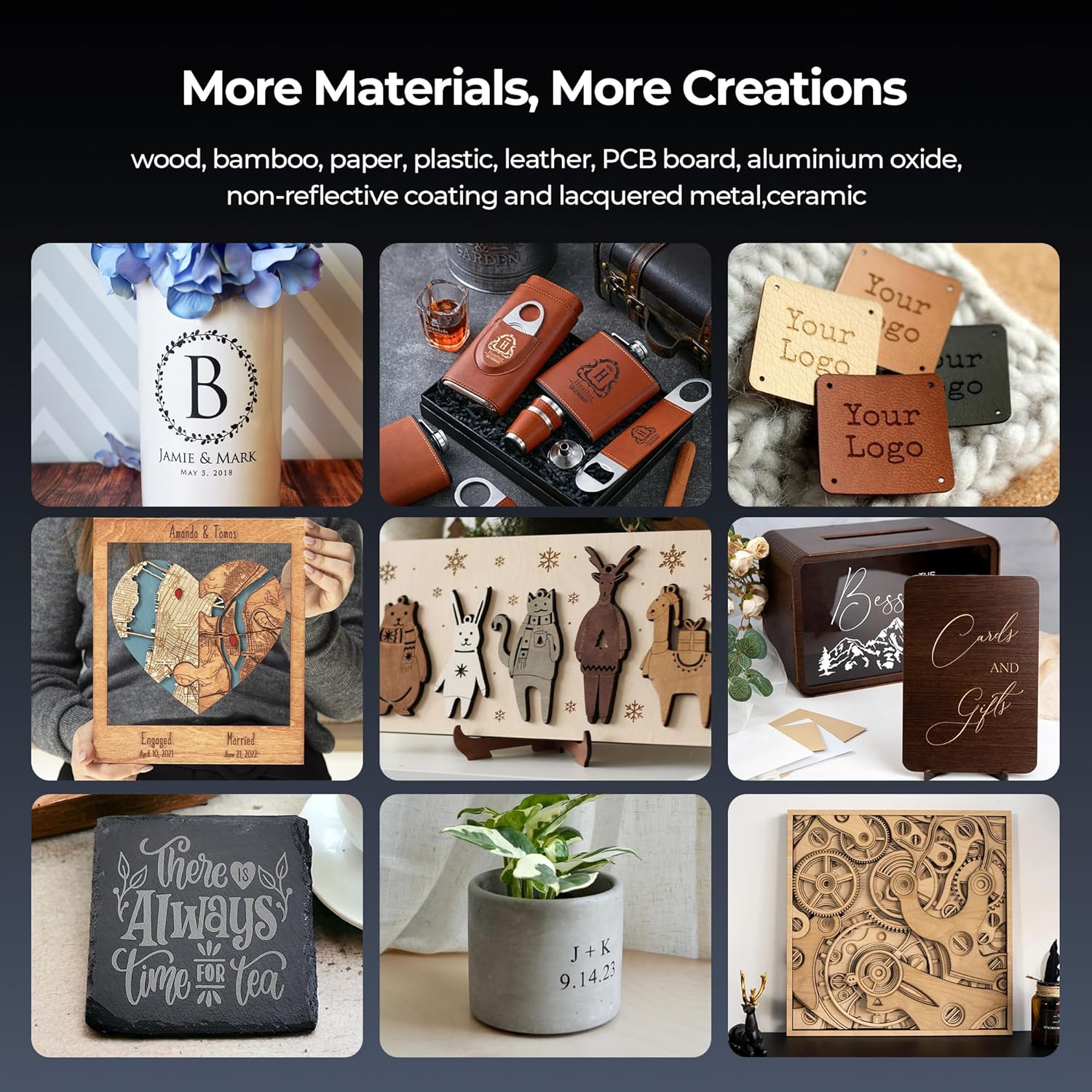 - Perfect for intricate designs on wood, acrylic, leather, coated metals, and more.
