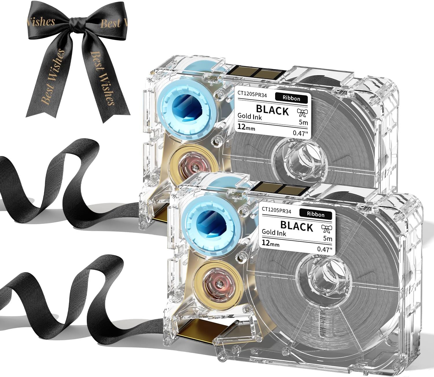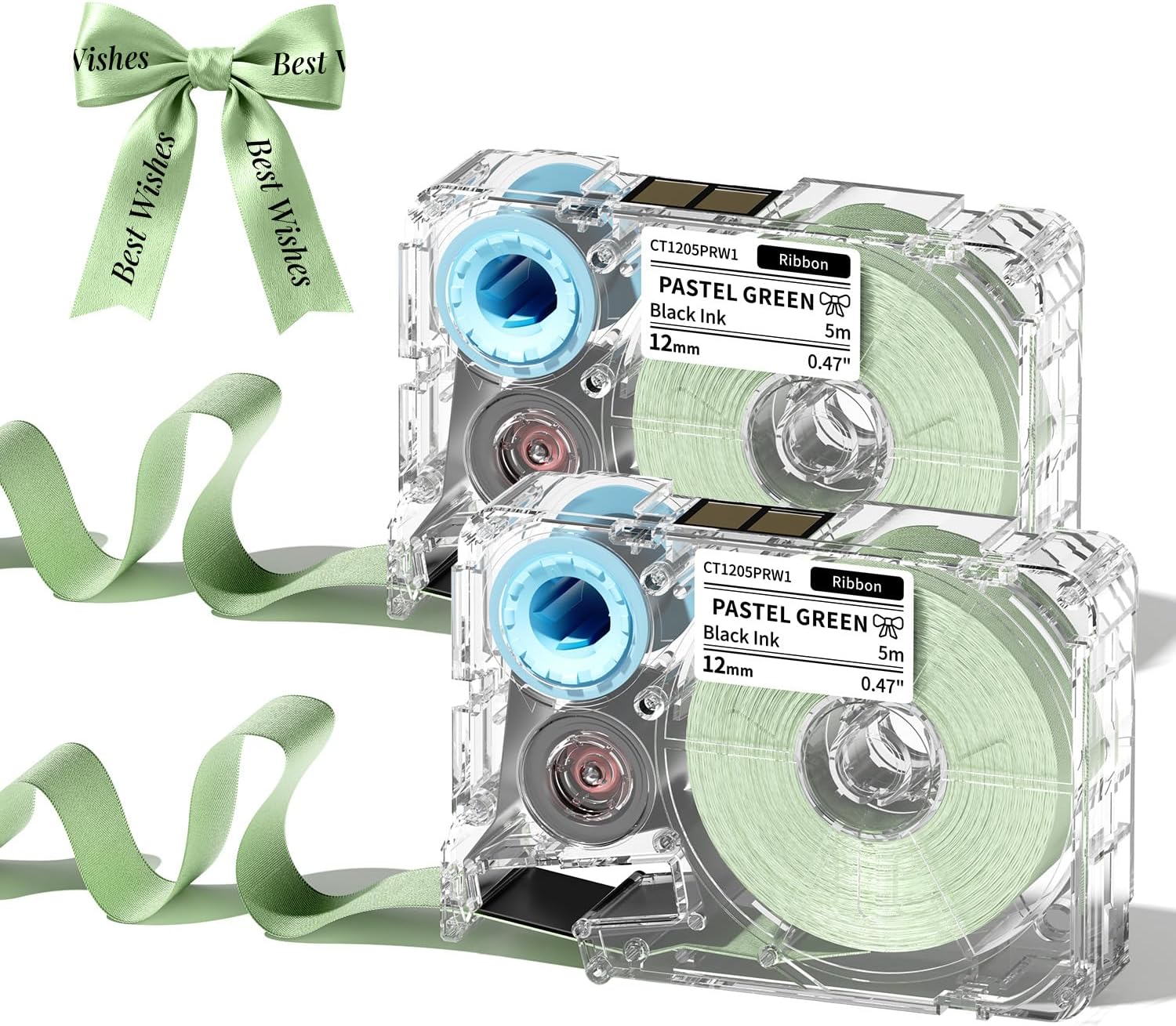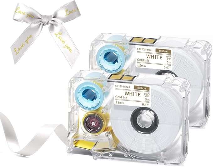 Phomemo A30 P15 Exclusive Decorative Fabric Ribbons (2-Pack) | Personalized Satin Label Tape for Gift Wrapping, Weddings, & DIY Crafts | 12mm x 5m